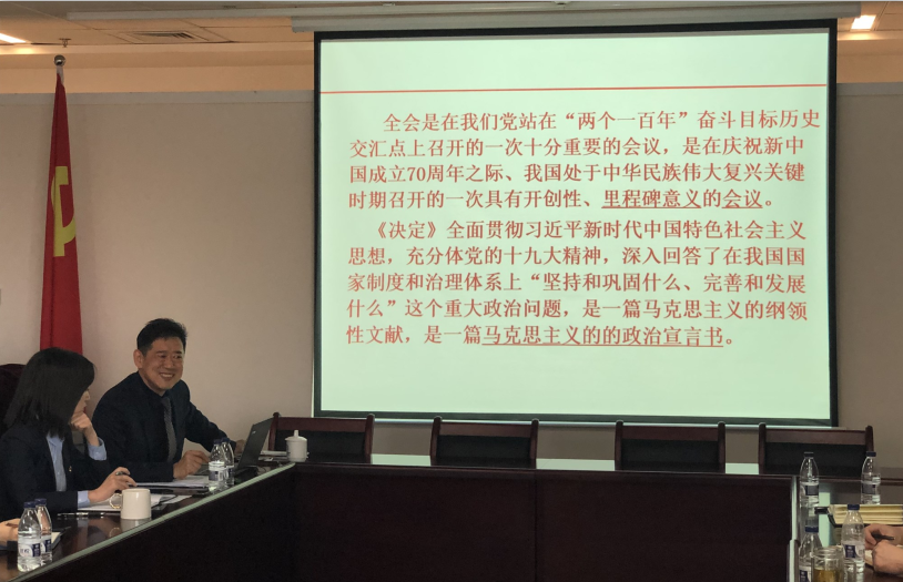 為進(jìn)一步深入領(lǐng)會(huì)和貫徹落實(shí)黨的十九屆四中全會(huì)精神,近日,盛京資產(chǎn)召開黨的十九屆四中全會(huì)宣講會(huì),邀請市委宣講團(tuán)成員、沈陽大學(xué)姜偉教授作全會(huì)精神宣講。盛京資產(chǎn)劉延輝同志主持會(huì)議,公司全體黨員、入黨積極分子和中層干部參加了宣講會(huì)。